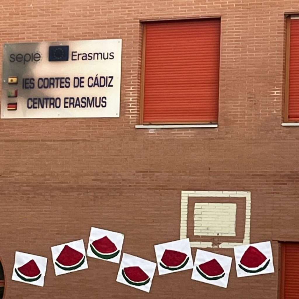A ello se suma que las instalaciones del Instituto de El Moral se encuentran plagadas de pancartas con mensajes como: ‘Un genocidio está sucediendo’ o ‘No podemos callar’… Y decoradas con rodajas de sandías, símbolo de apoyo al pueblo palestino y que son habituales en las manifestaciones pro Palestina y pro Hamas.
