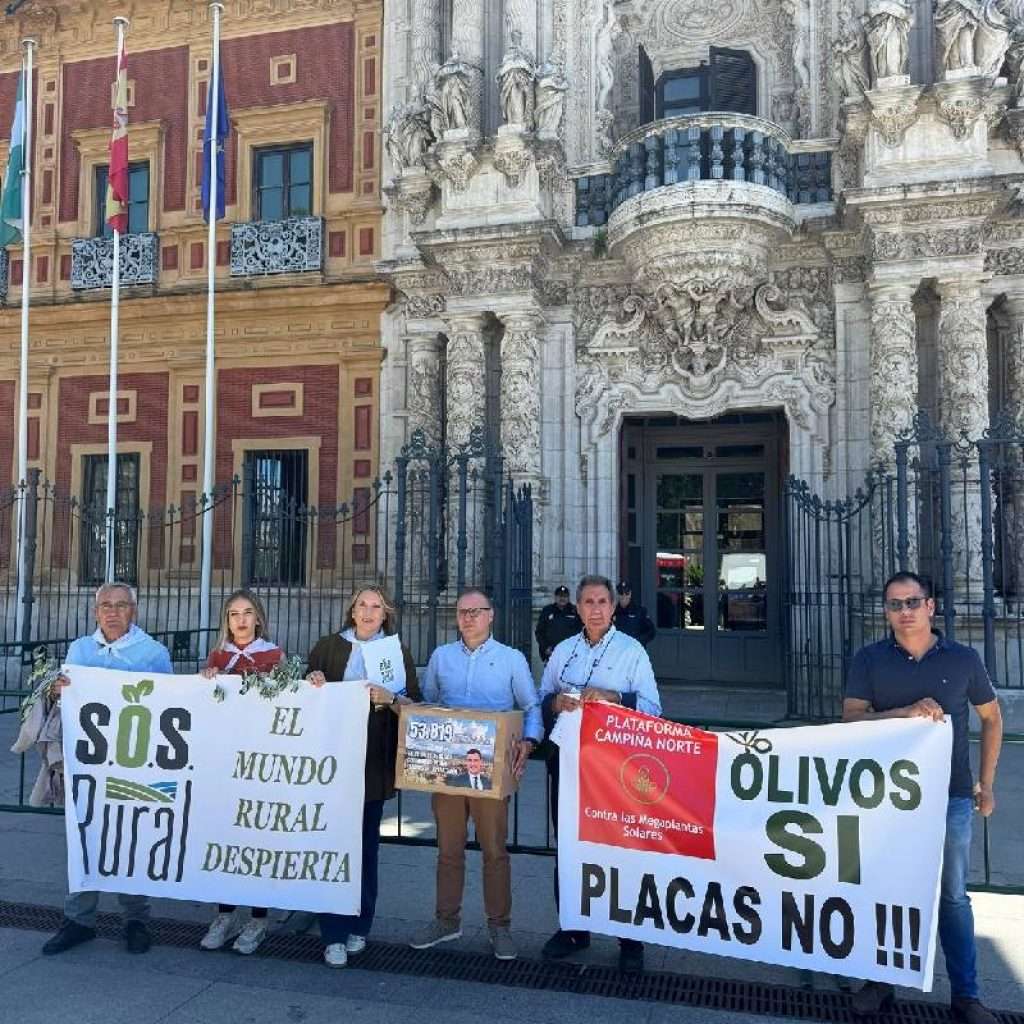 La plataforma SOS Rural, junto a la Plataforma Campiña Norte contra las Megaplantas Solares, ha entregado este miércoles en la sede del Parlamento andaluz más de 55.000 firmas ciudadanas para frenar lo que muchos consideran una auténtica barbarie medioambiental y económica: la tala masiva de 500.000 olivos centenarios en Jaén y Córdoba para la instalación de megaplantas solares.