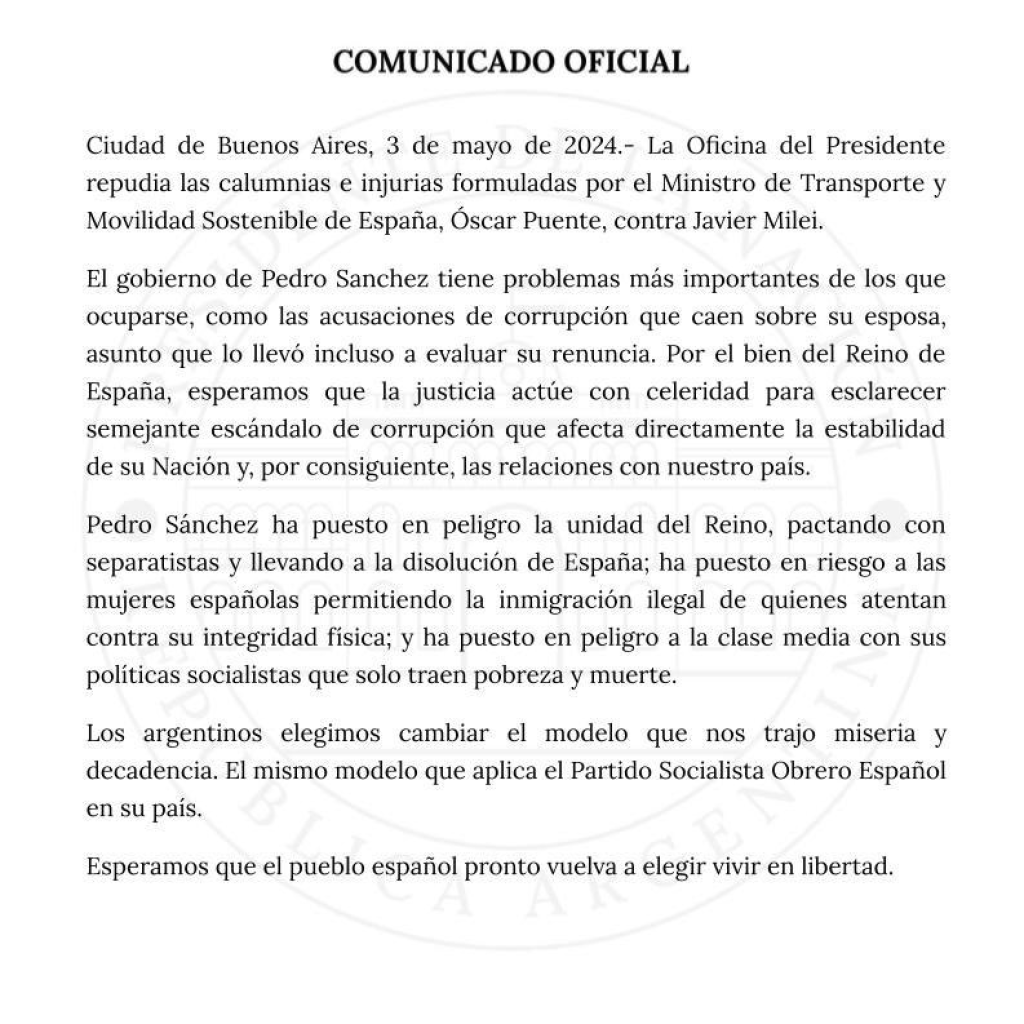La estrategia sanchista de distraer a la ciudadanía de la deriva totalitaria y la corrupción con el correspondiente alarde de vulgaridad de Óscar Puente cosechó un nuevo fracaso, pues recibió una respuesta ponderada y firme del Gobierno argentino, ajena a los grotescos requiebros del ministro, e incidió precisamente donde Sánchez quería hurtar del foco informativo: la corrupción a todos los niveles inherente a la aristocracia del PSOE.